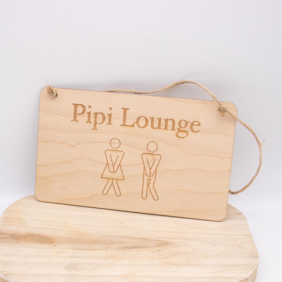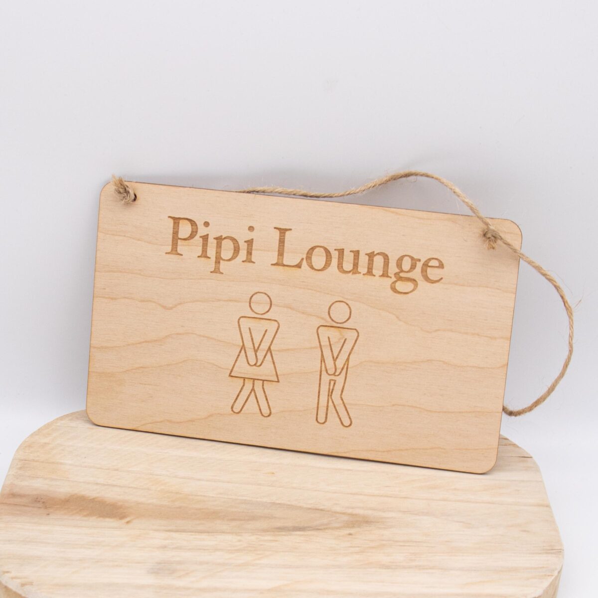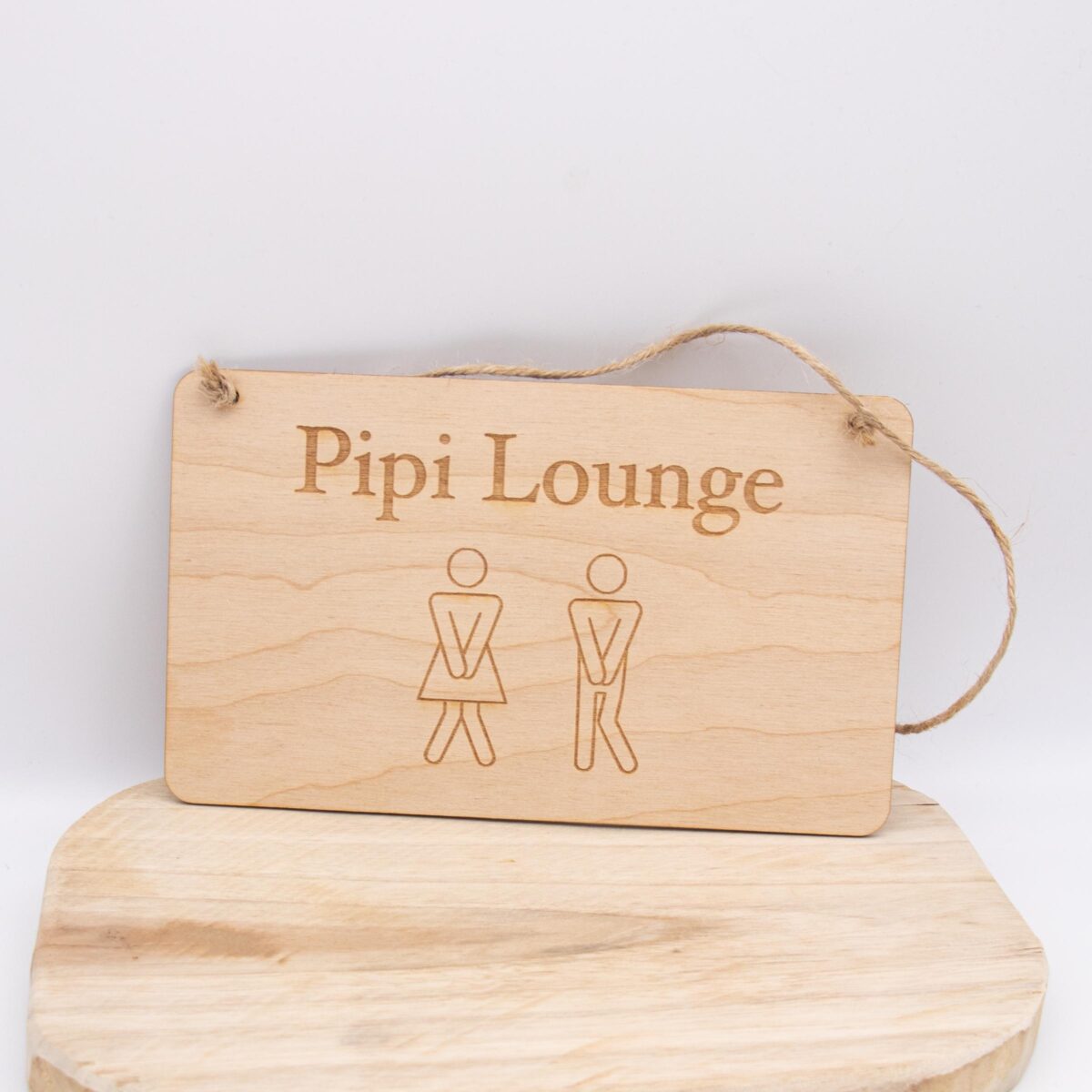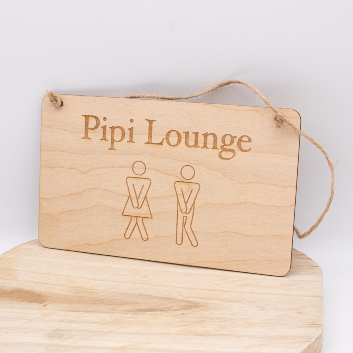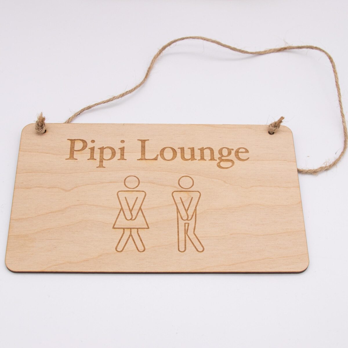 Bringen Sie Humor und Stil in Ihr Badezimmer mit unserem charmanten Holzschild „Pipi Lounge“! Dieses hochwertige, aus natürlichem Holz gefertigte Schild ist mit einem witzigen Motiv versehen: Zwei stilisierte Figuren, die sichtlich dringend auf die Toilette müssen, verleihen dem Design einen humorvollen Touch. Über den Figuren steht der Schriftzug „Pipi Lounge“, der Ihrem Badezimmer einen einzigartigen und einladenden Charakter verleiht.