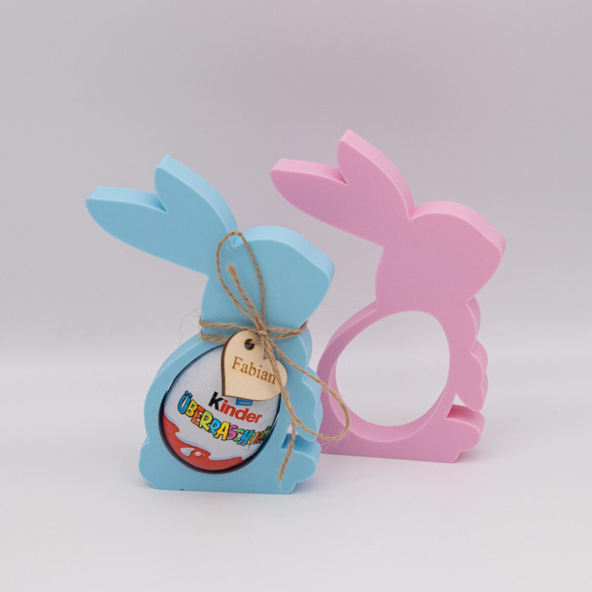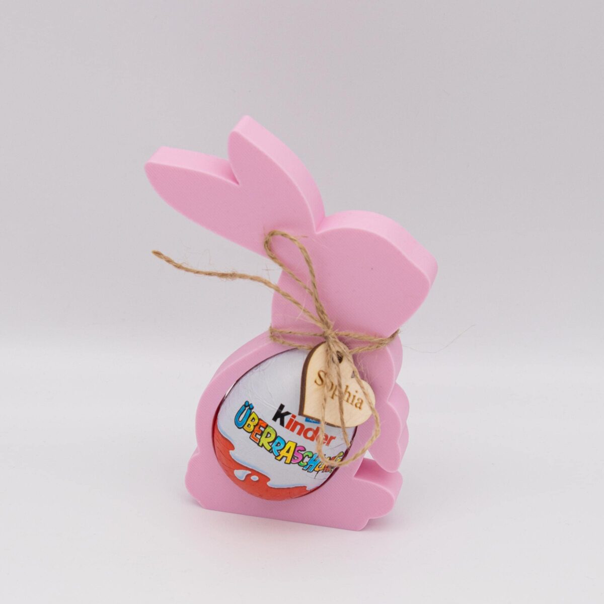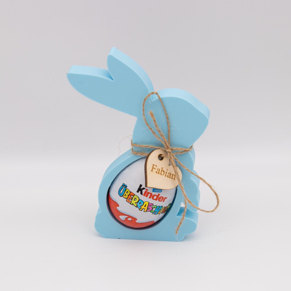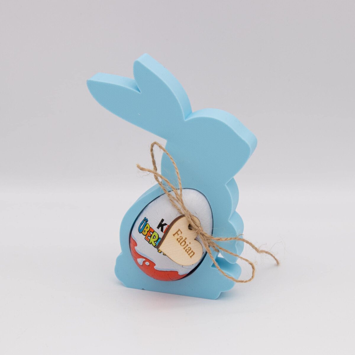 Suchst du eine besondere Osterdeko oder ein süßes Mitbringsel? Unser handgefertigter Osterhase aus PLA ist nicht nur ein Hingucker, sondern auch ein praktischer Halter für Überraschungseier – inklusive einem personalisierbaren Holzanhänger mit Namen oder Wunschtext!