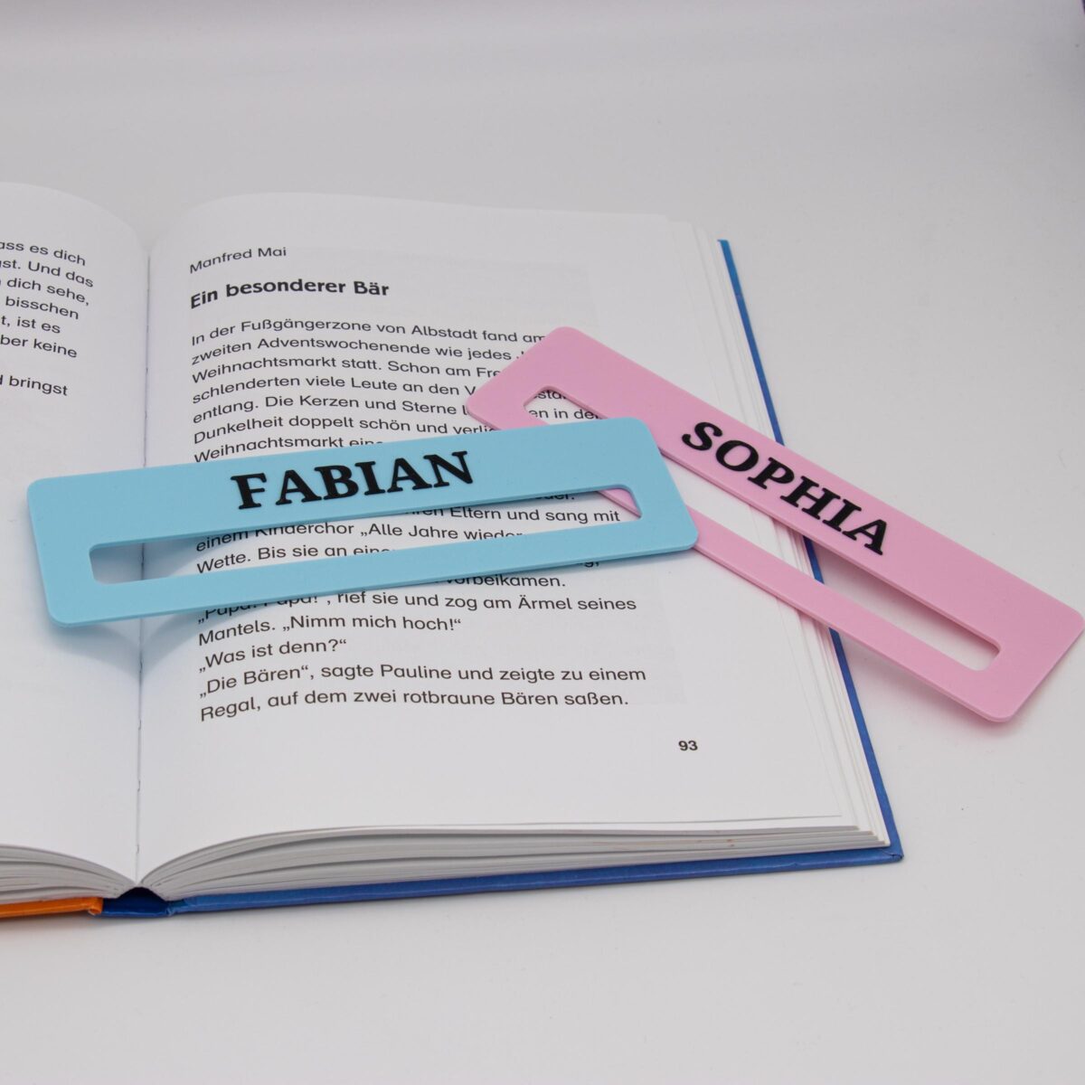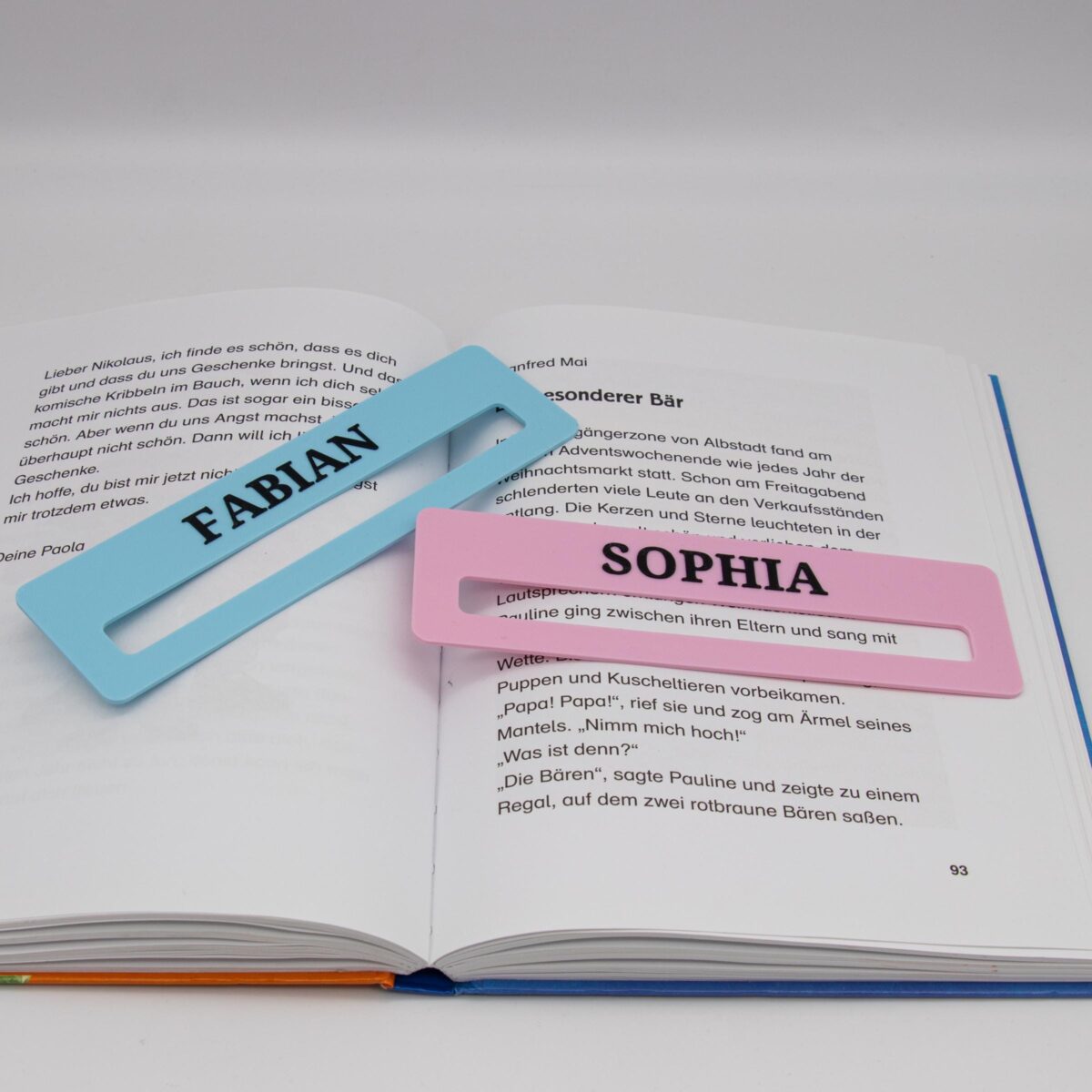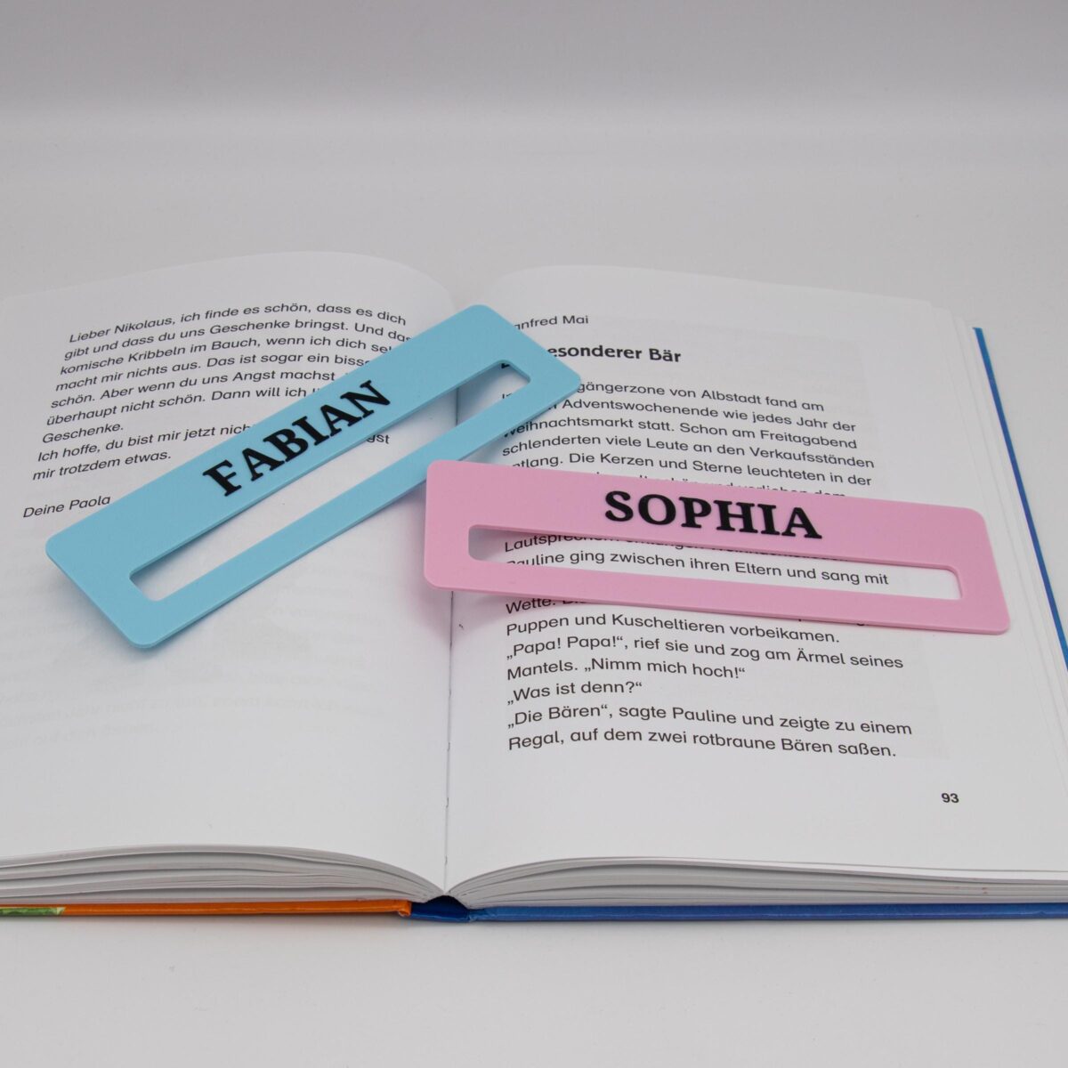 Individuell anpassbar: Auf Wunsch kann ein Name auf die Lesehilfe gedruckt werden – eine tolle Motivation für junge Leser! Erhältlich in Rosa oder Hellblau mit schwarzem Text.