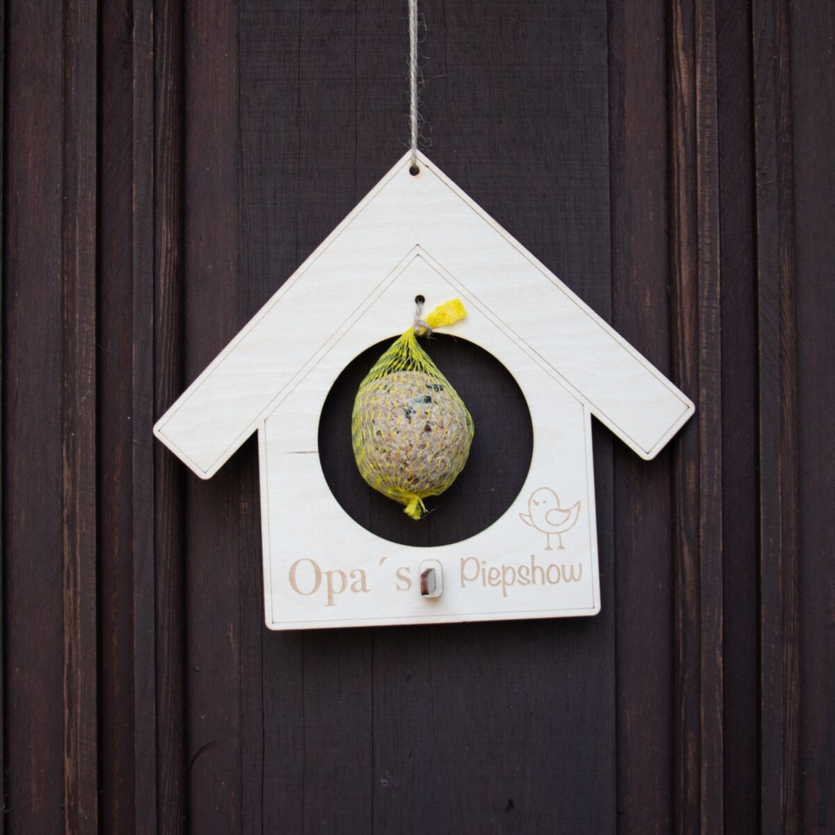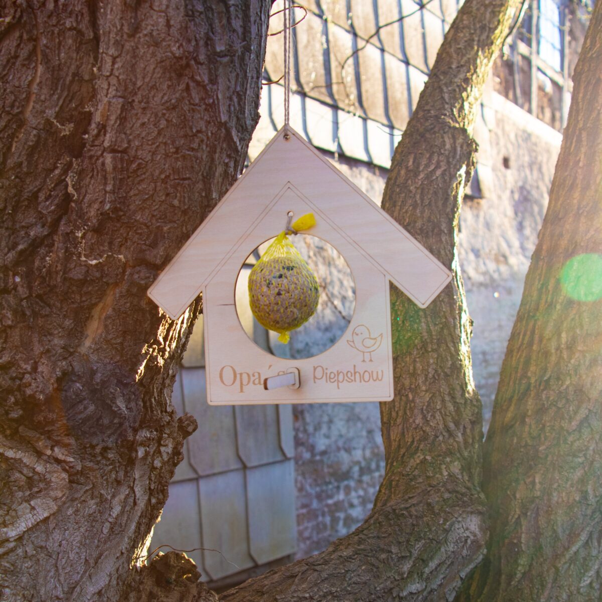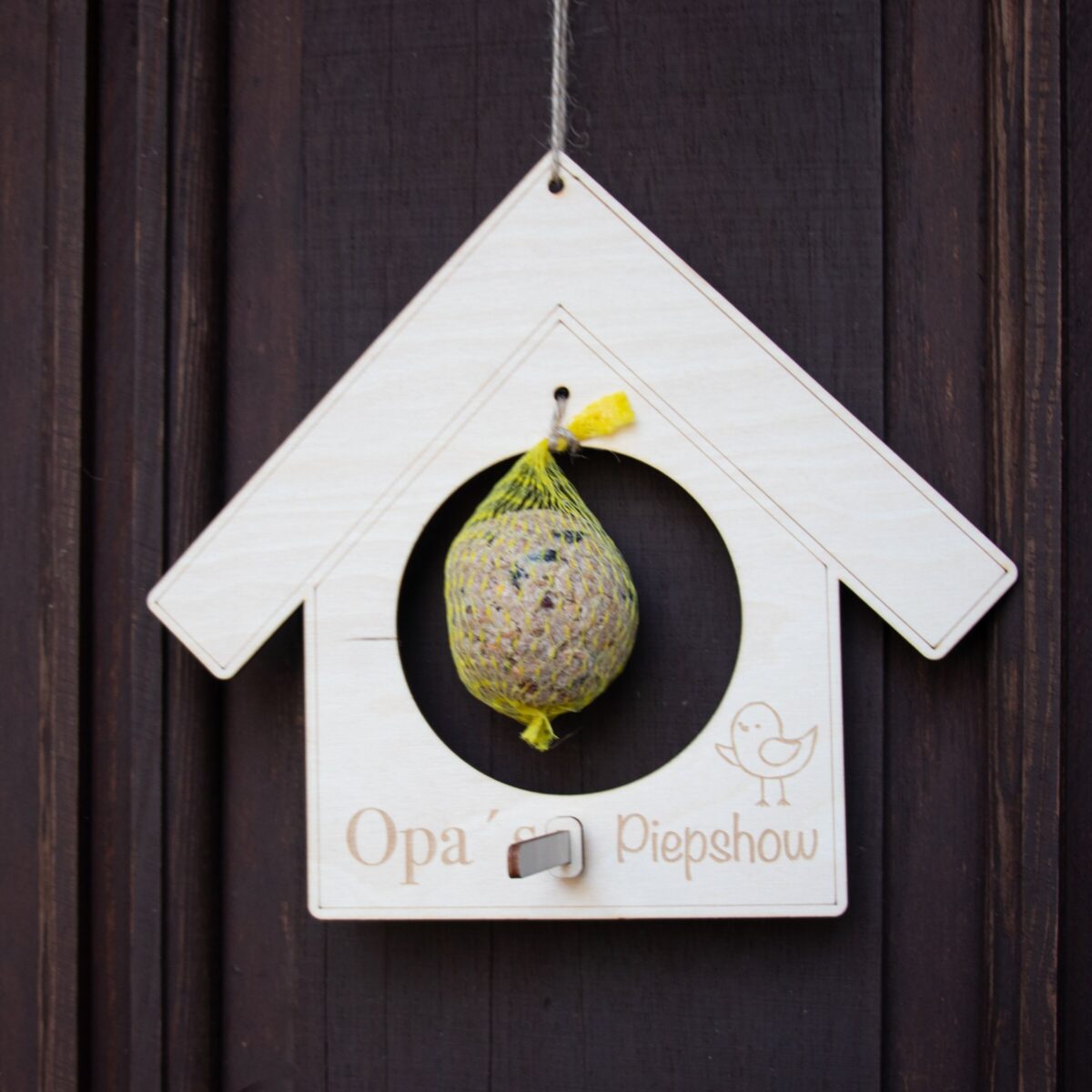 Das Highlight dieses einzigartigen Vogelhauses ist die humorvolle Gravur „Opas Piepshow“, die jedem Betrachter ein Schmunzeln entlockt. Dieses Vogelhaus ist das ideale Geschenk für jemanden, der schon alles zu haben scheint, aber sicherlich noch Platz für ein Lächeln und ein bisschen Naturfreude hat.