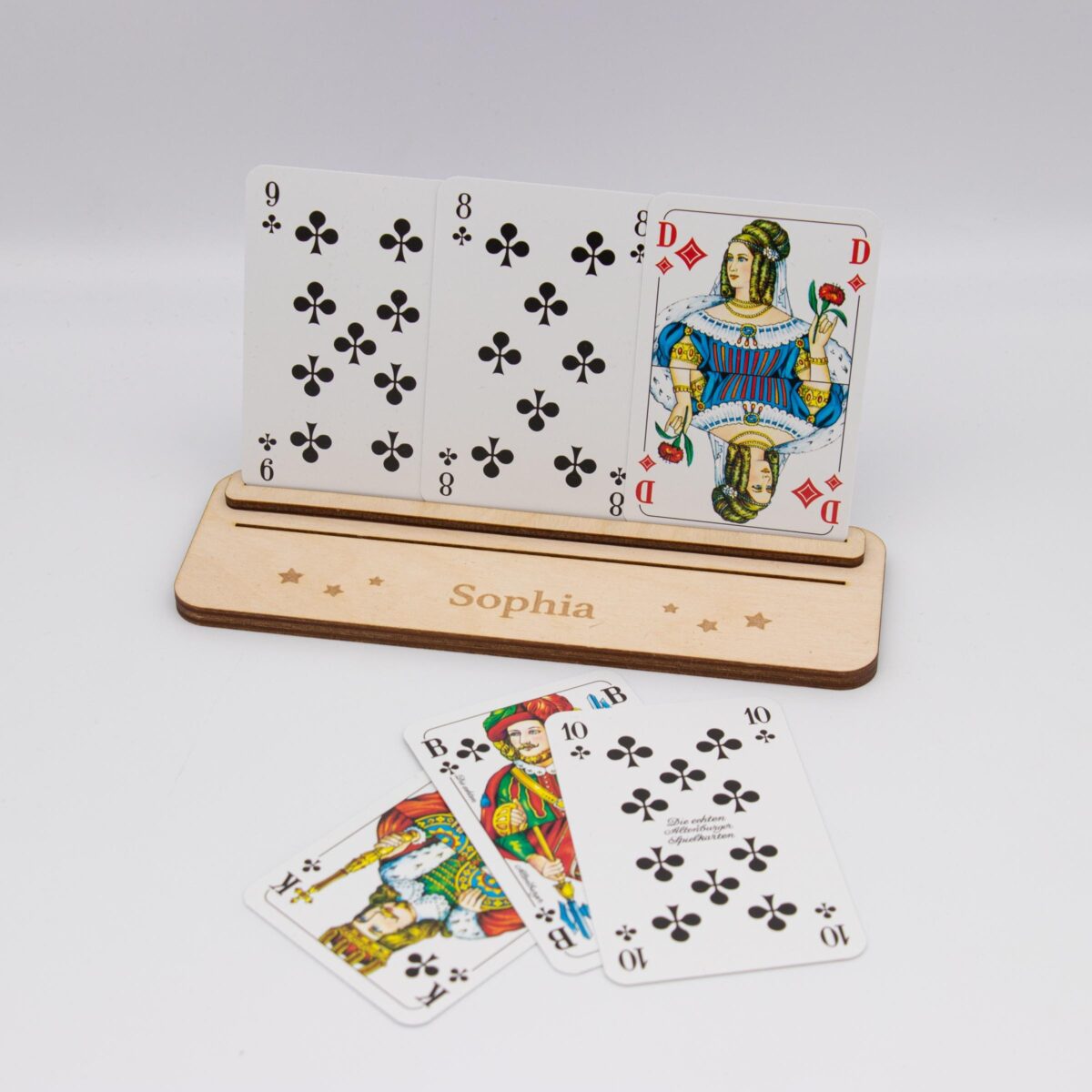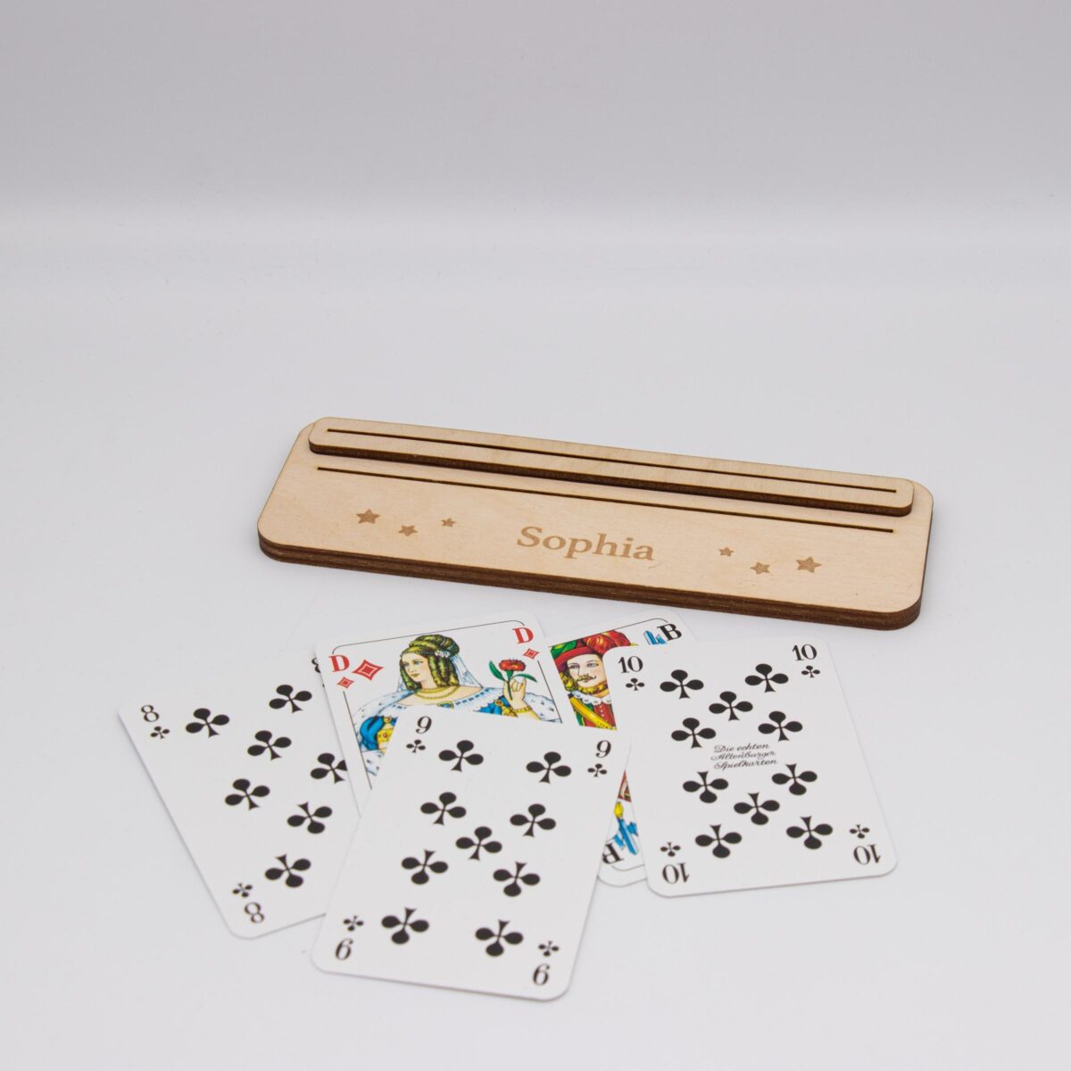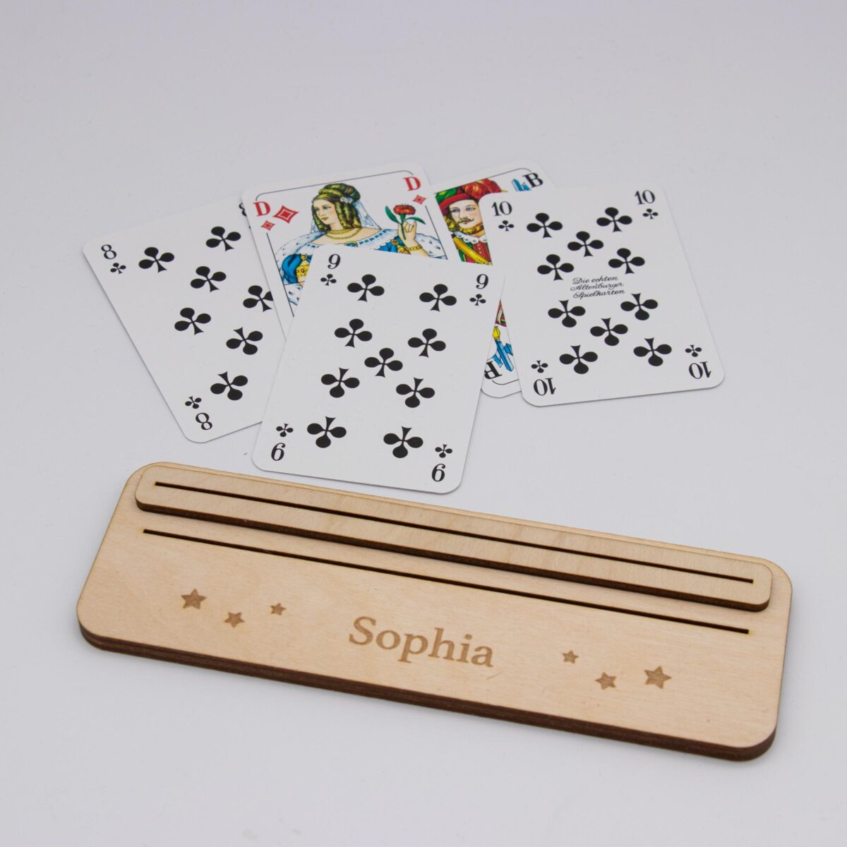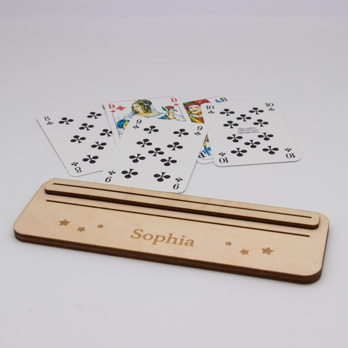 Spielkartenhalter aus Holz – personalisiert
