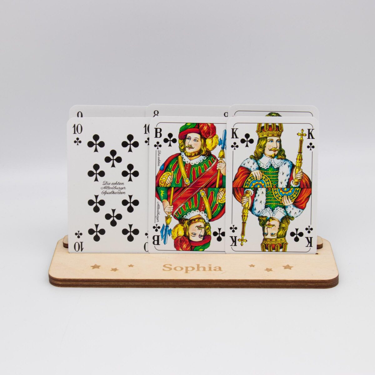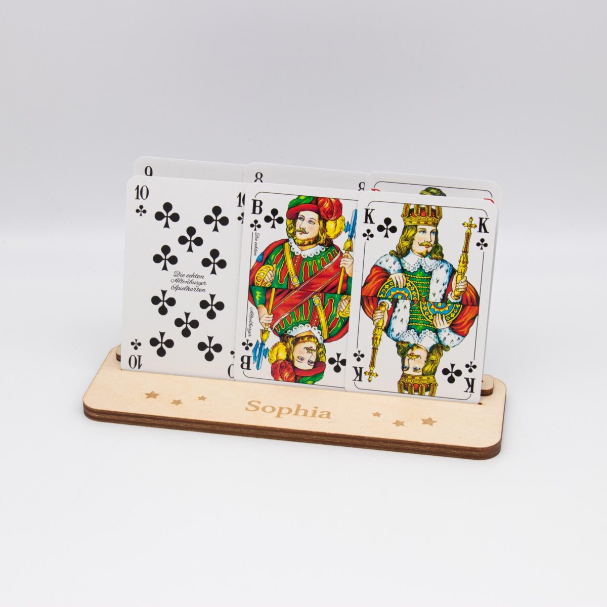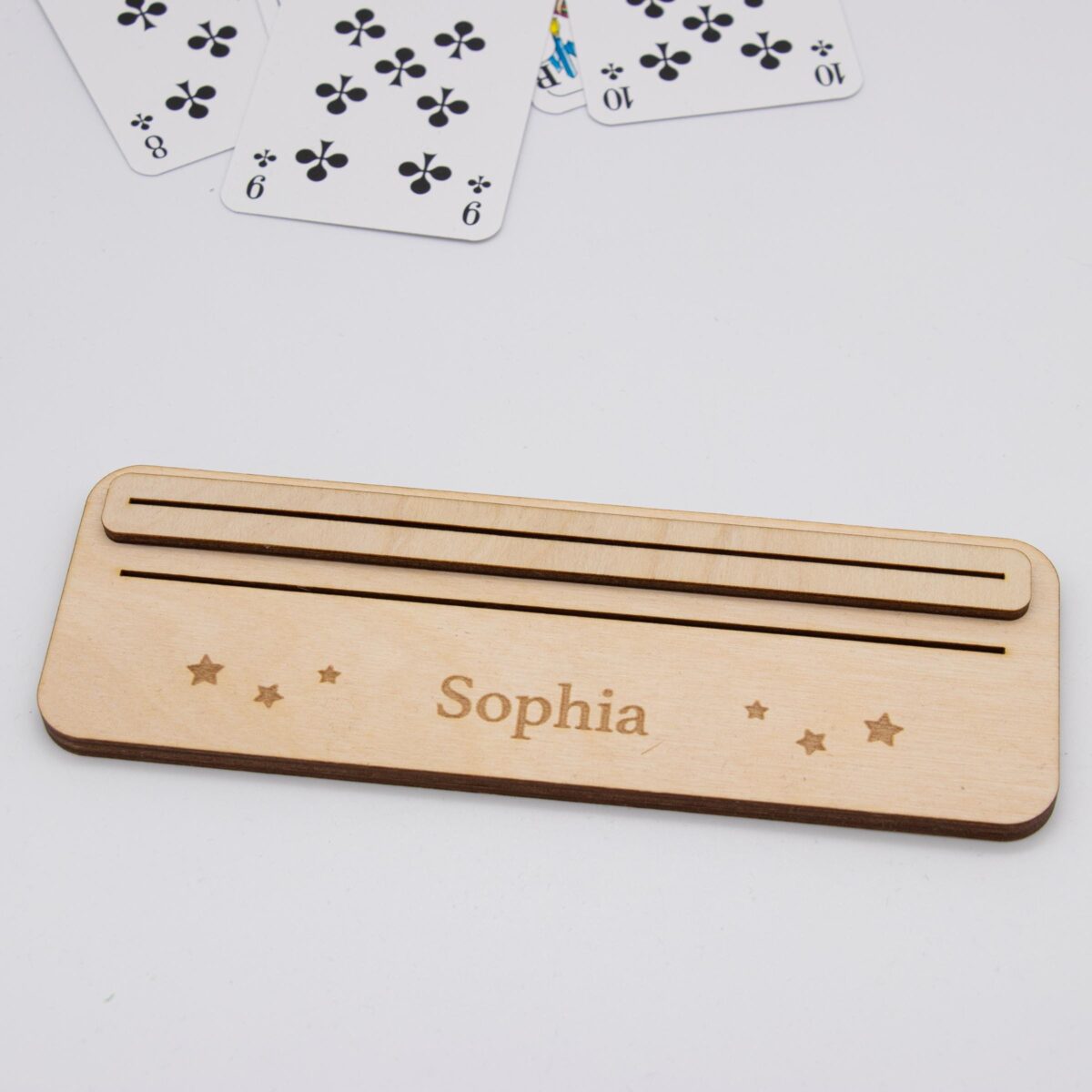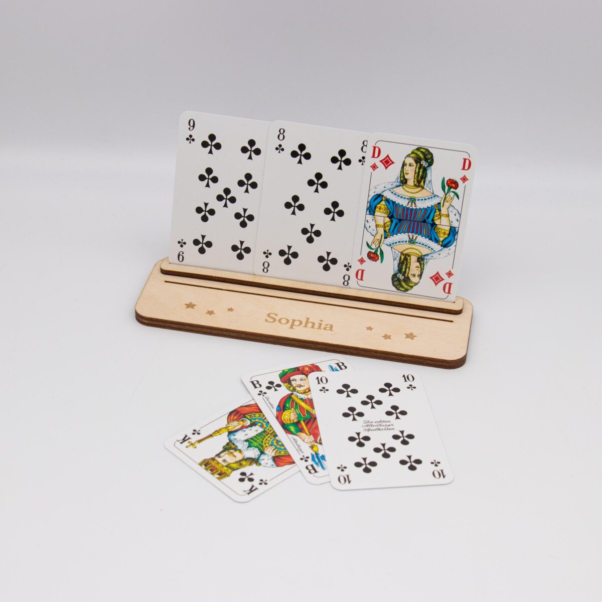 Spielkartenhalter aus Holz – personalisiert