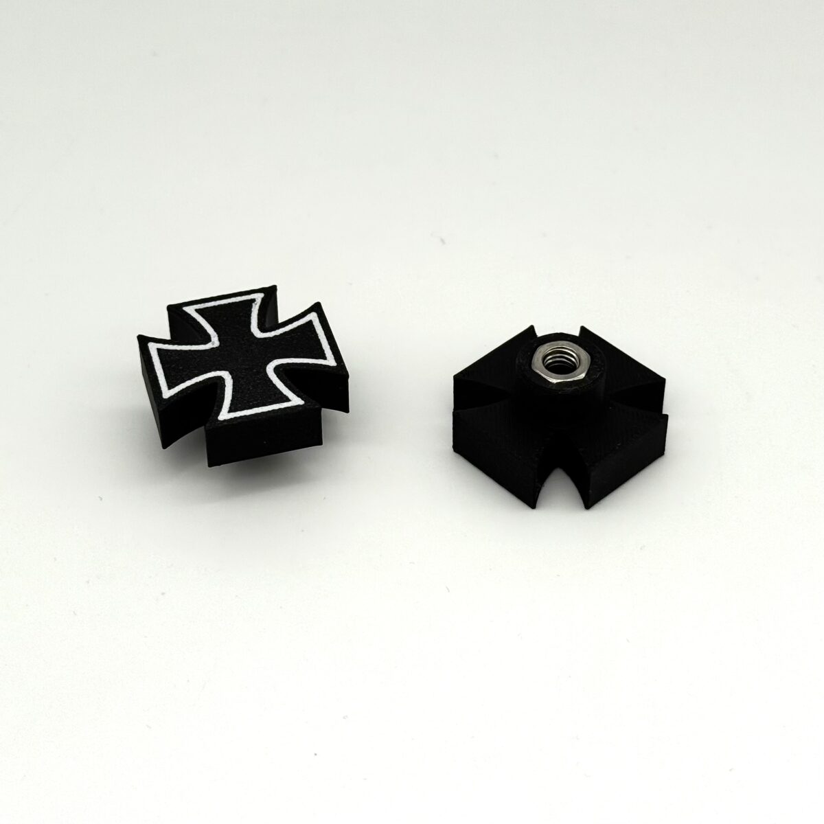 - 1x Sterngriffmutter „Eisernes Kreuz“ mit M6 Messing-Einschmelzeinsatz