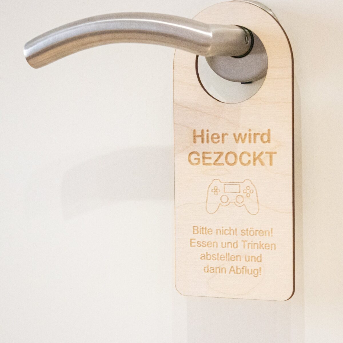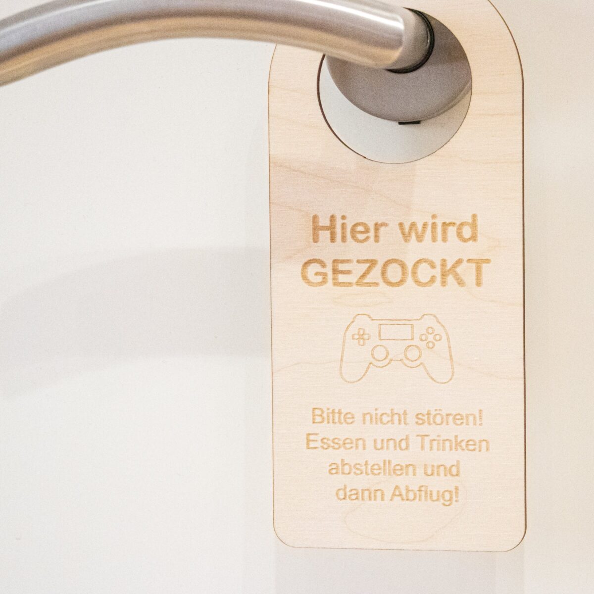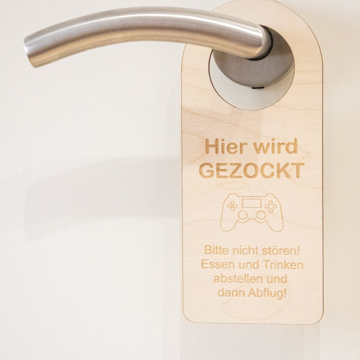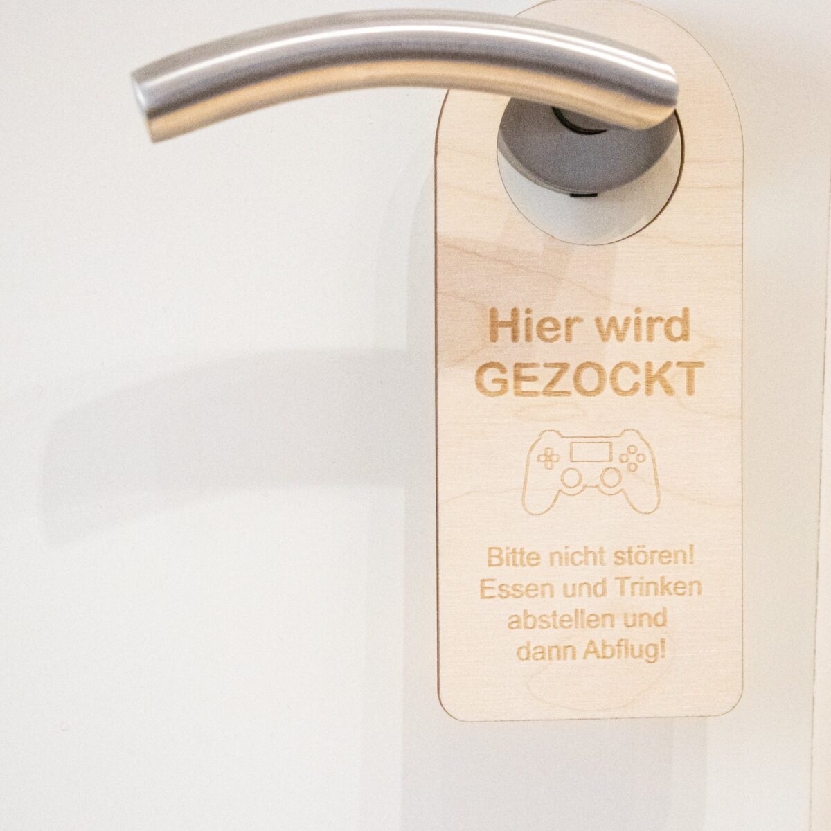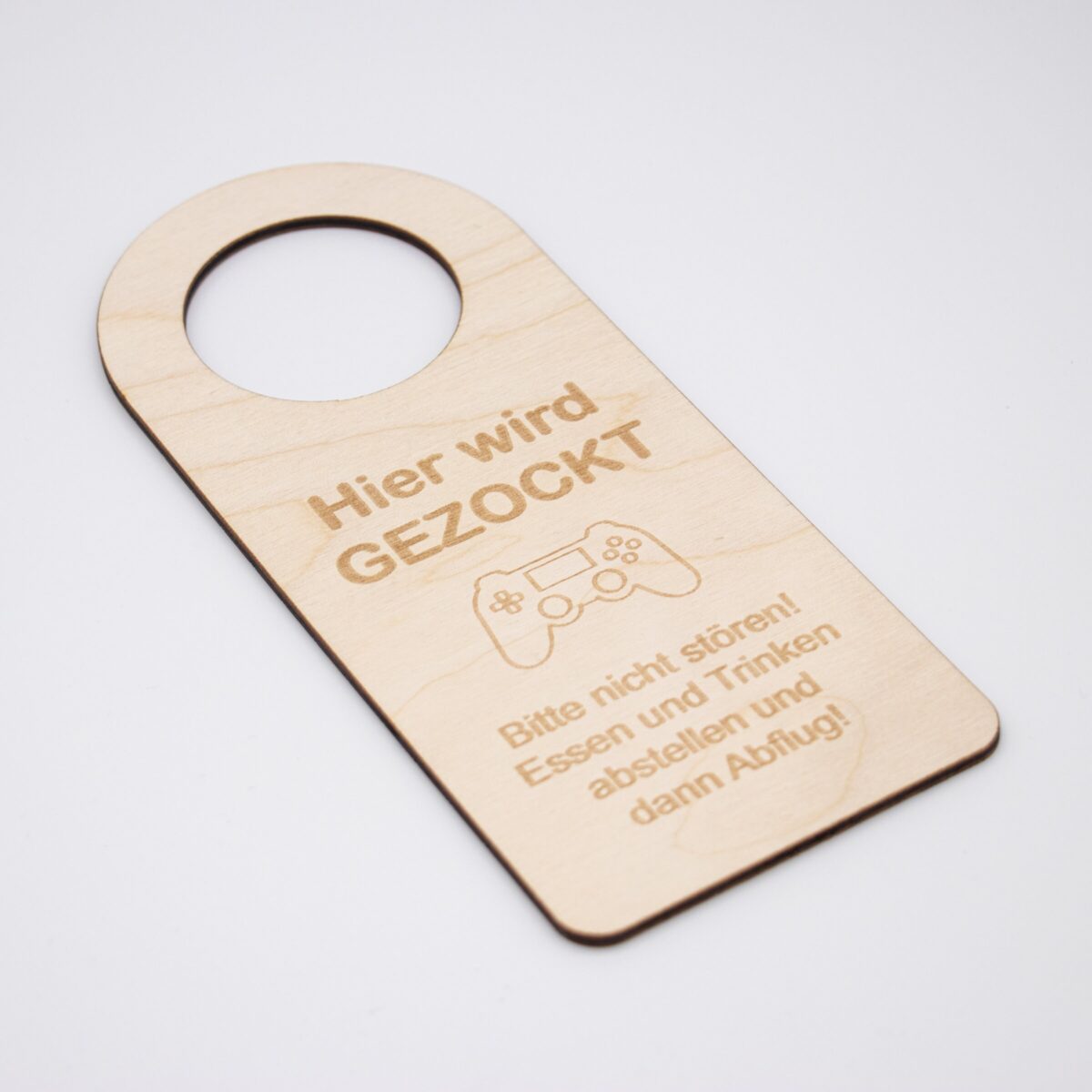 Dieser Türhänger wird mithilfe unseres Lasers hergestellt. Er bestehen aus 3mm Birkensperrholz.